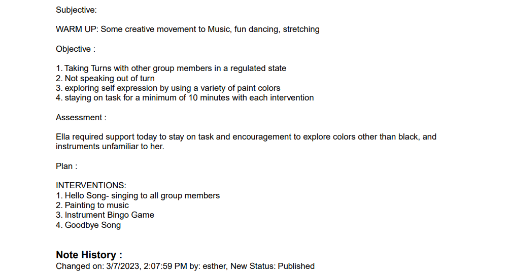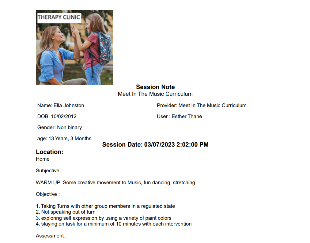 Complete the assessment and UnitusTI will suggest a list of music therapy goals to build each client’s treatment plan, along with a list of Meet In The Music interventions that target those goals.